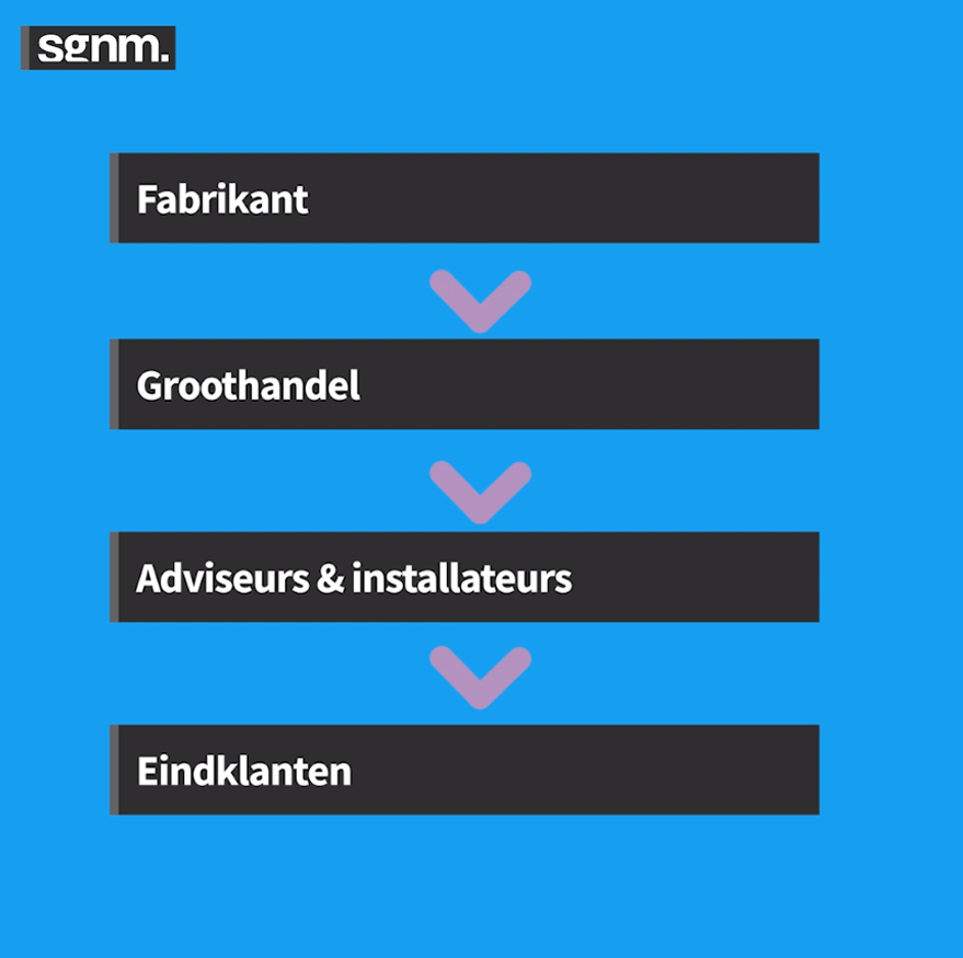 De fabrikant bekijkt hoe hij zijn producten optimaal onder de aandacht kan brengen van de groothandel. De groothandel probeert op zijn beurt zo goed mogelijk de installateur te voorzien van productspecificaties en installatie-informatie, met het doel om zoveel mogelijk installatiegemak te bieden. En de installateur? Die installeert wat zijn eindklant nodig heeft.